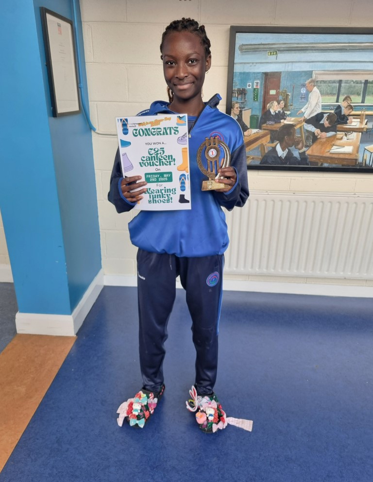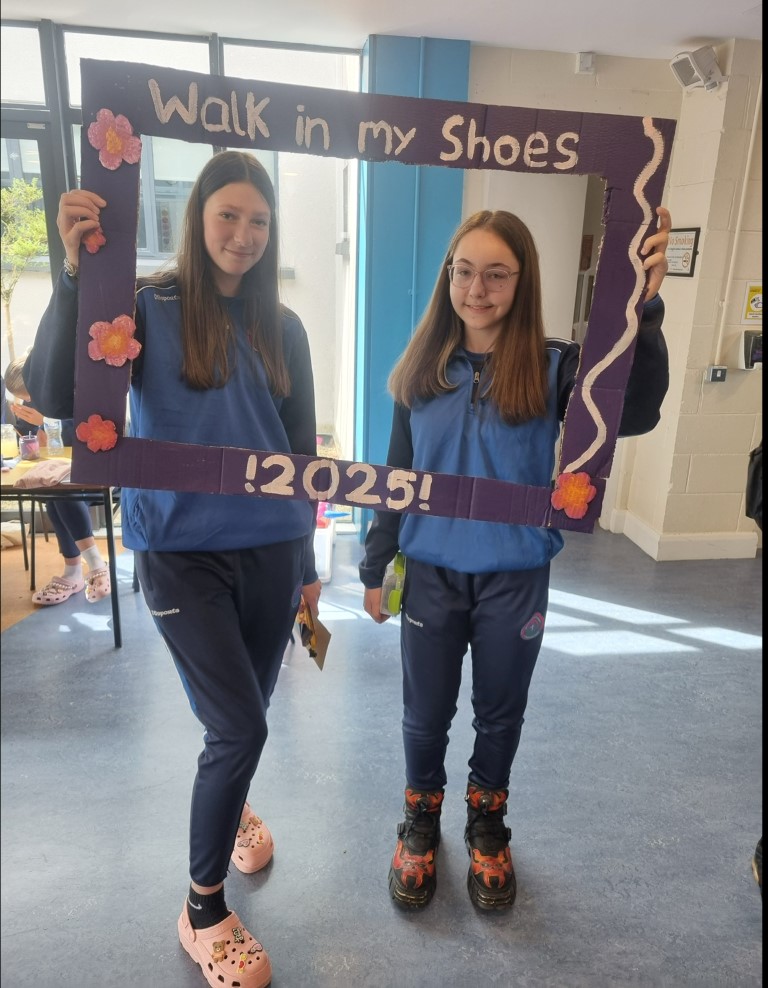 Recently, our Student Council hosted our first Walk In My Shoes event. Students and staff were encouraged to come to school wearing funky shoes with the aim of encouraging everyone to walk in someone else’s shoes and therefore be more conscious of the struggles that others may be going through on a daily basis. The W.I.M.S, national, campaign aims to promote positive mental health and reduce the stigma around it. On the day, Student Council organised fun activities, a raffle and tuck shop. To end the day, all students took part in our school Slí na Sláinte walk and were treated to an ice-pop in the sunshine. A donation of €500, from proceeds raised, was made to Carlow Regional Youth Services who provide a wellbeing, counselling and support service for young people in Carlow.
