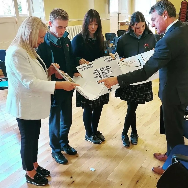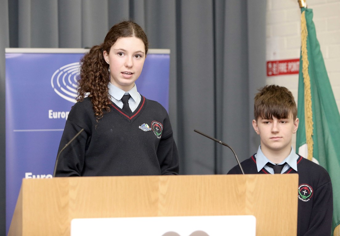 On Friday 28 April Mr Carly, Ms Byrne, Natalia and Timas two of the Junior Ambassadors from Ms. Byrne's CSPE class attended the EPAS Award Ceremony in Eurofound (Dublin constituency). Natalia presented our project to those assembled. There were two MEPs Frances Fitzgerald and Barry Andrews and 53 students from six schools. Click on the heading for more information and photos.