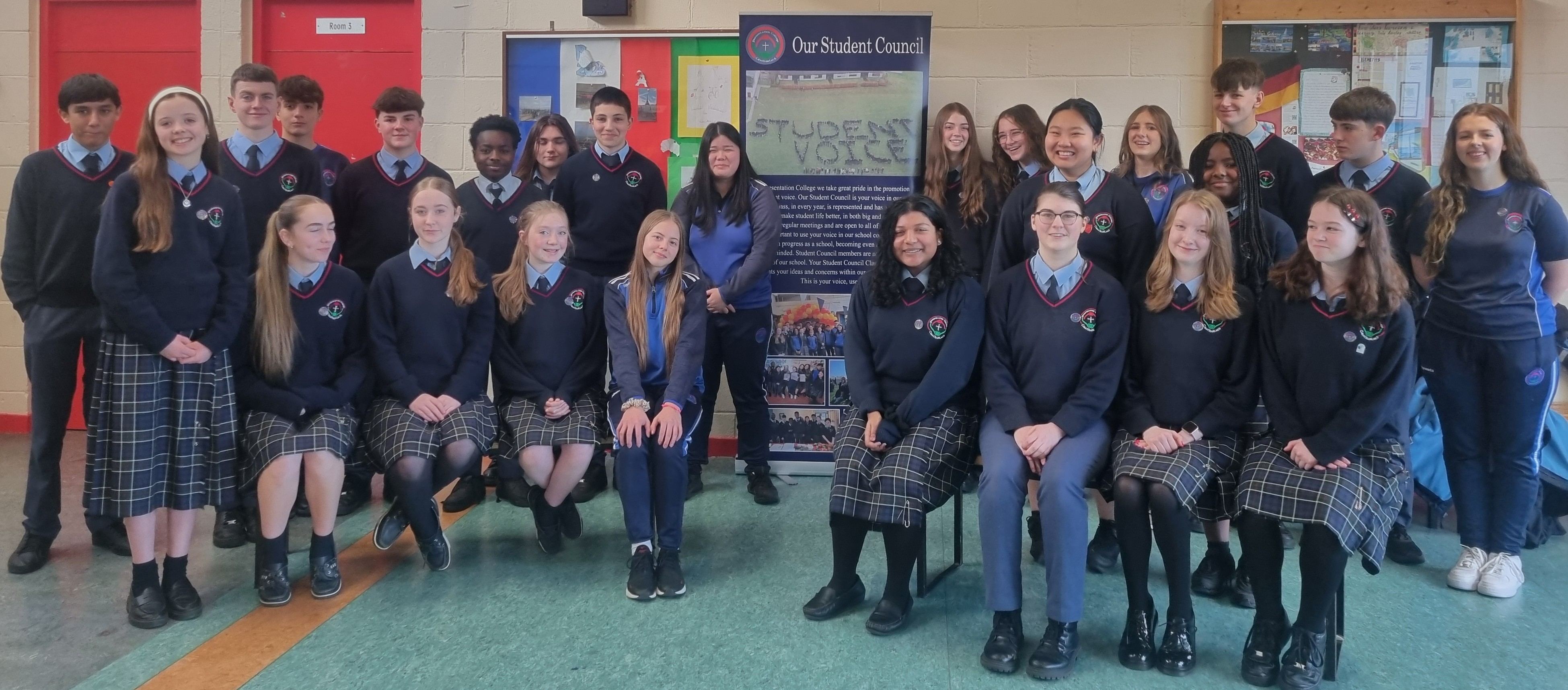 Student Voice is important, and in Presentation College, we are proud of our Student Council Team. The Student Council is made up of two representatives from each class in the school as well as the Head Boy and Head Girl. For the year 2025-2026 these are James Kehoe and Chloe Ryan..