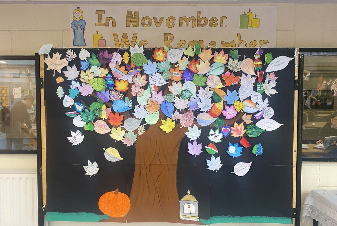 In November we are encouraged to pray for those who have gone before us, family and friends. This tradition continues in our school, where we add the names of loved ones ,to the tree.