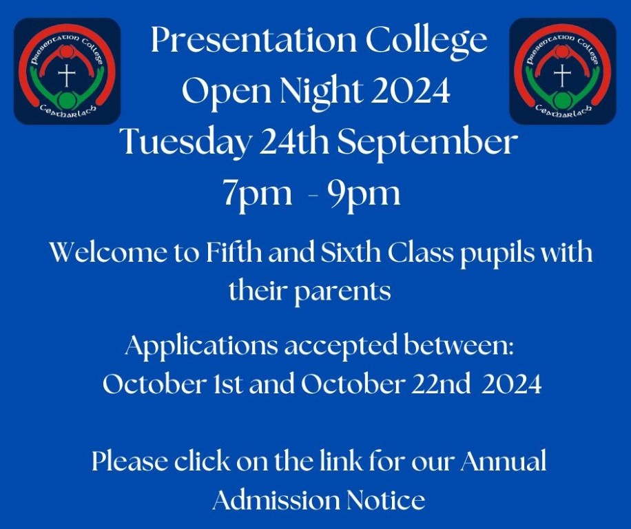 Due to the Parent Teacher Meeting on Thursday, there will be no choir rehearsal or Junior and Second Year football training. Classes finish at 15:45.