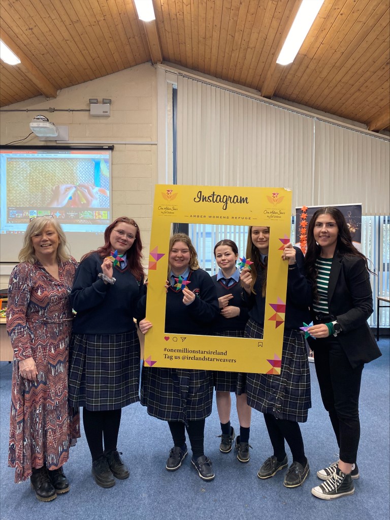 We were very grateful to have @amberwomensrefuge visit our TY students recently. Students created eight point stars. Amber’s One Million Stars Ireland project is an inclusive community arts project connecting communities across Ireland in solidarity against domestic abuse and all forms of violence. Each eight-point star woven represents light, hope and solidarity against violence, promoting our project’s eight points of healthy love within relationships.